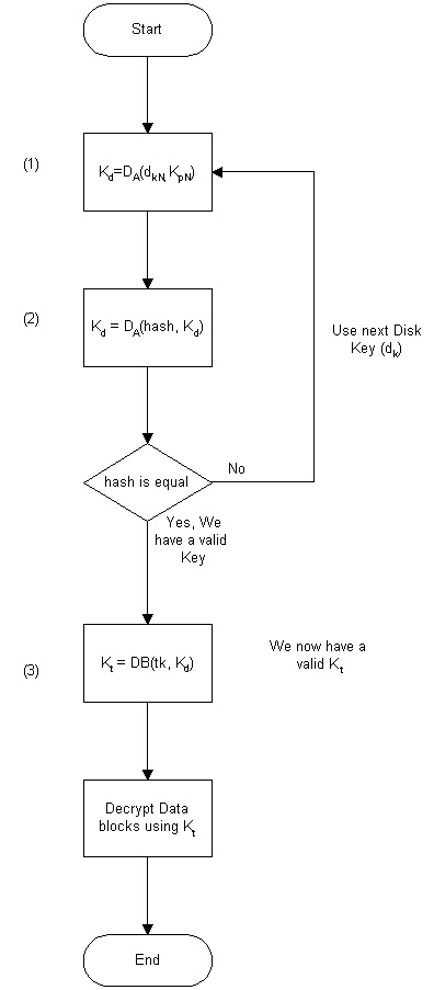 The player then checks its decrypted value of Kd to ensure it is the correct one, by attempting to decrypt the hash contained on the disk using equation 2.