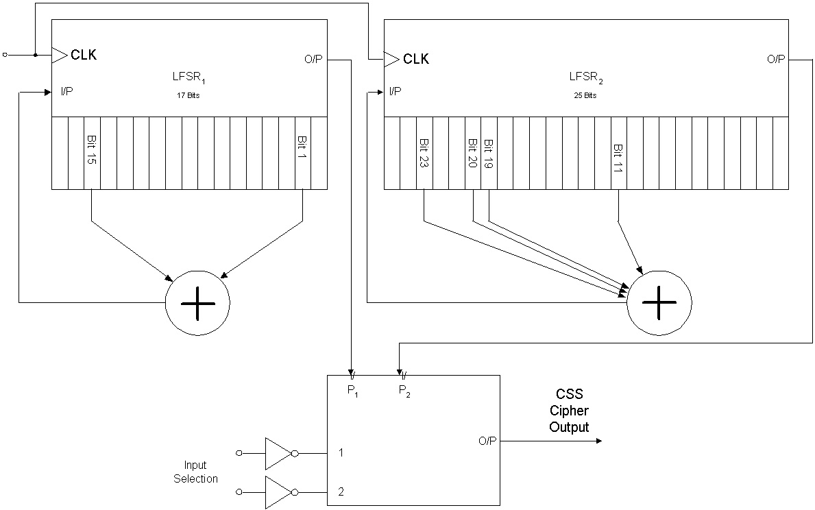 The CSS Stream Cipher is shown in diagrammatic form in Figure 2.