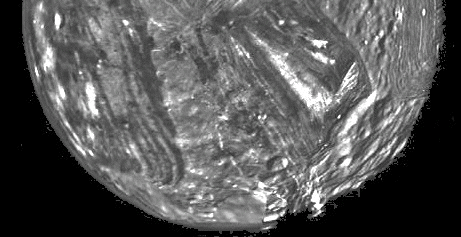 At first, Voyager 2's images of Miranda were a mystery. Everyone had expected that Uranus' moons would show very little history of internal activity (like Callisto). Explaining the bizarre hitherto unknown terrain proved quite an embarrassment to those who had to do it on live TV. Their usual impressive and esoteric technical jargon gave out and they had to resort to using such terms as "chevron" (right), "race track", and "layer cake" to describe Miranda's unique features.