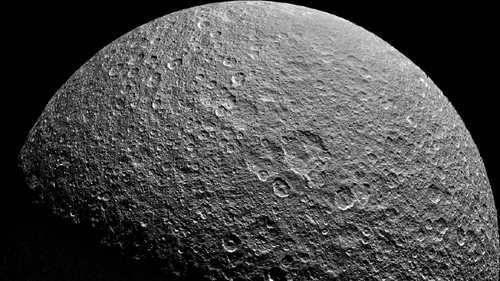 Rhea is composed primarily of water ice with rock making up less than 1/3 of its mass.