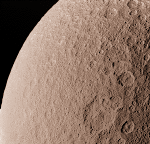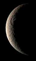 Though somewhat larger, Rhea is otherwise very similar to Dione. They both have similar compositions, albedo features and varied terrain. Both rotate synchronously and have dissimilar leading and trailing hemispheres.